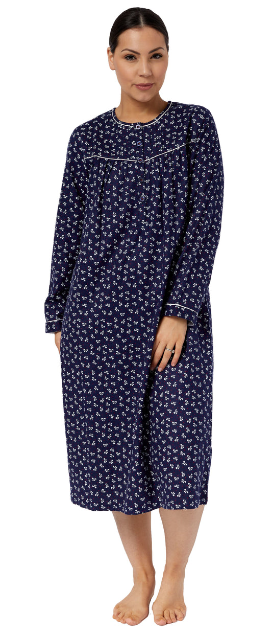 SHRANK - FLANNELETTE BOWS PLEATED MID LENGTH NIGHTIE